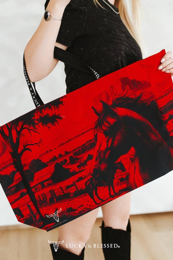 Tote| Red Black Horse Western Printed Canvas |Large |Tote Bag